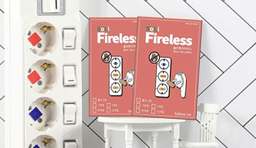 초경량 제품으로 용적이 작아 설치 장비/설비 없이도 손쉽고 간편하게 설치 가능 전기누전 및 쇼트 등 온갖 전기화재 사고가 일어날 수 있는 곳에 붙여놓는 것만으로도 화재를 예방할 수 있는 무전원 자동감지 시스템 (* 설치장소 : 가정, 사무실, 공장 등의 콘센트)